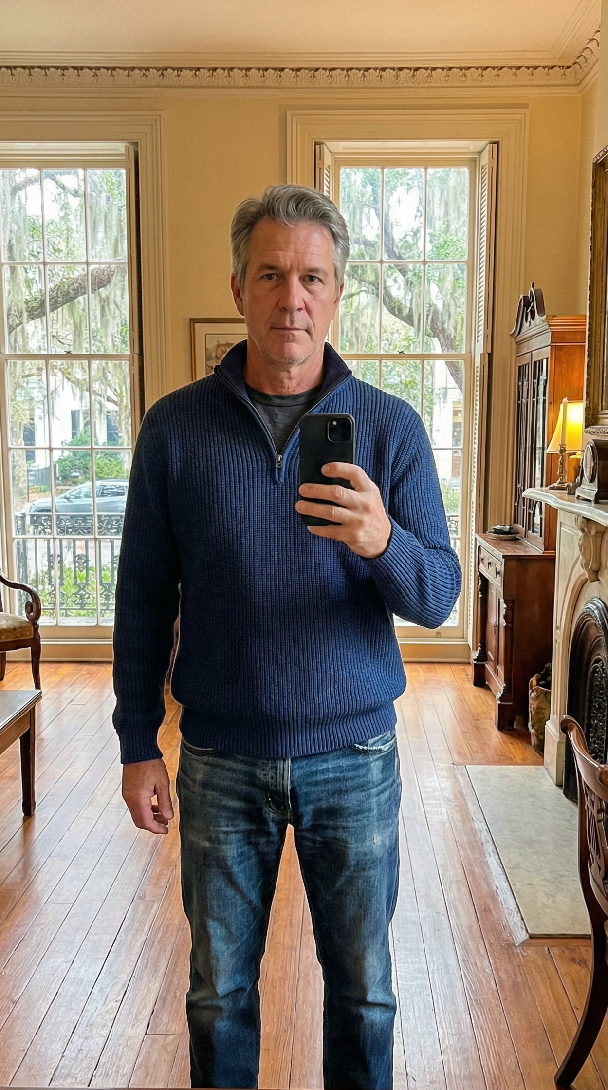 “The fit is relaxed but still looks polished. Not bulky, not thin. I’m 64 and have had a hard time finding clothes that feel modern without trying to look young so this hits the mark.”